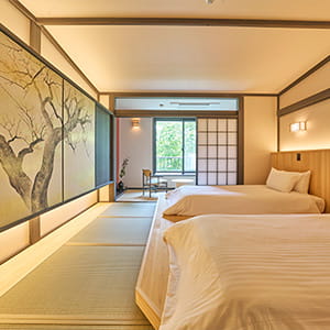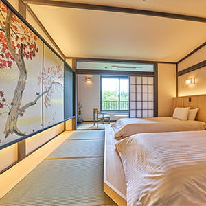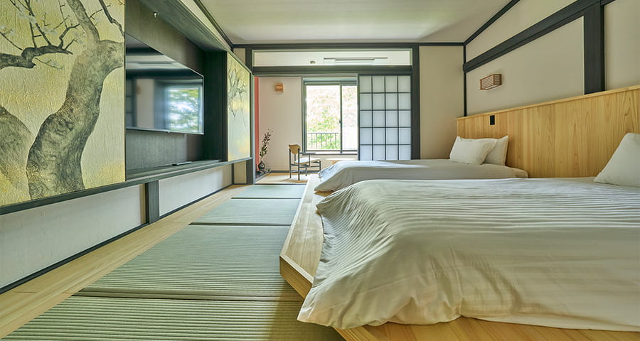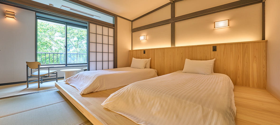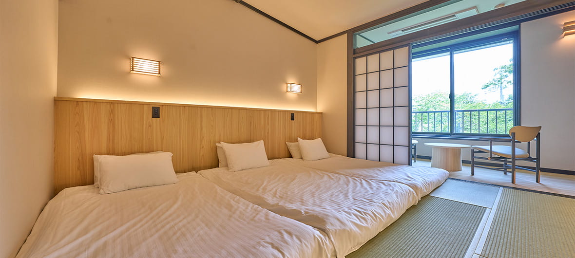 This is a tatami room, ideal for families with young children. Up to three single futon sets can be prepared, accommodating up to three guests.