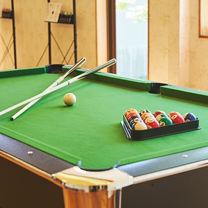 An entertainment corner with table tennis, billiards, air hockey, and darts is also available—perfect for rainy days.