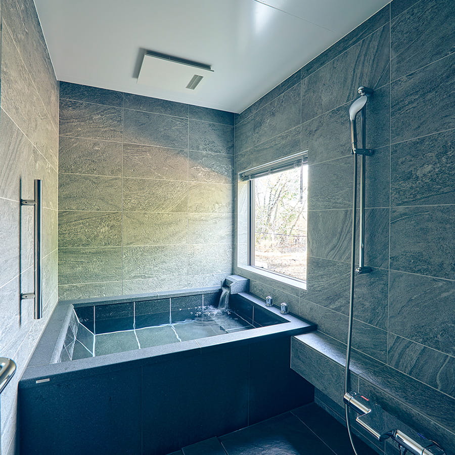 The best thing about winter is the wood burning stove. The large living-dining room is also gently warmed by a single wood-burning stove. You can relax both physically and mentally by splitting firewood with a kindling cracker that can easily split firewood and putting it on the stove for an extraordinary experience. Relax with the Yogibo sofa while gazing at Mt. Fuji, the pool, and the flames.