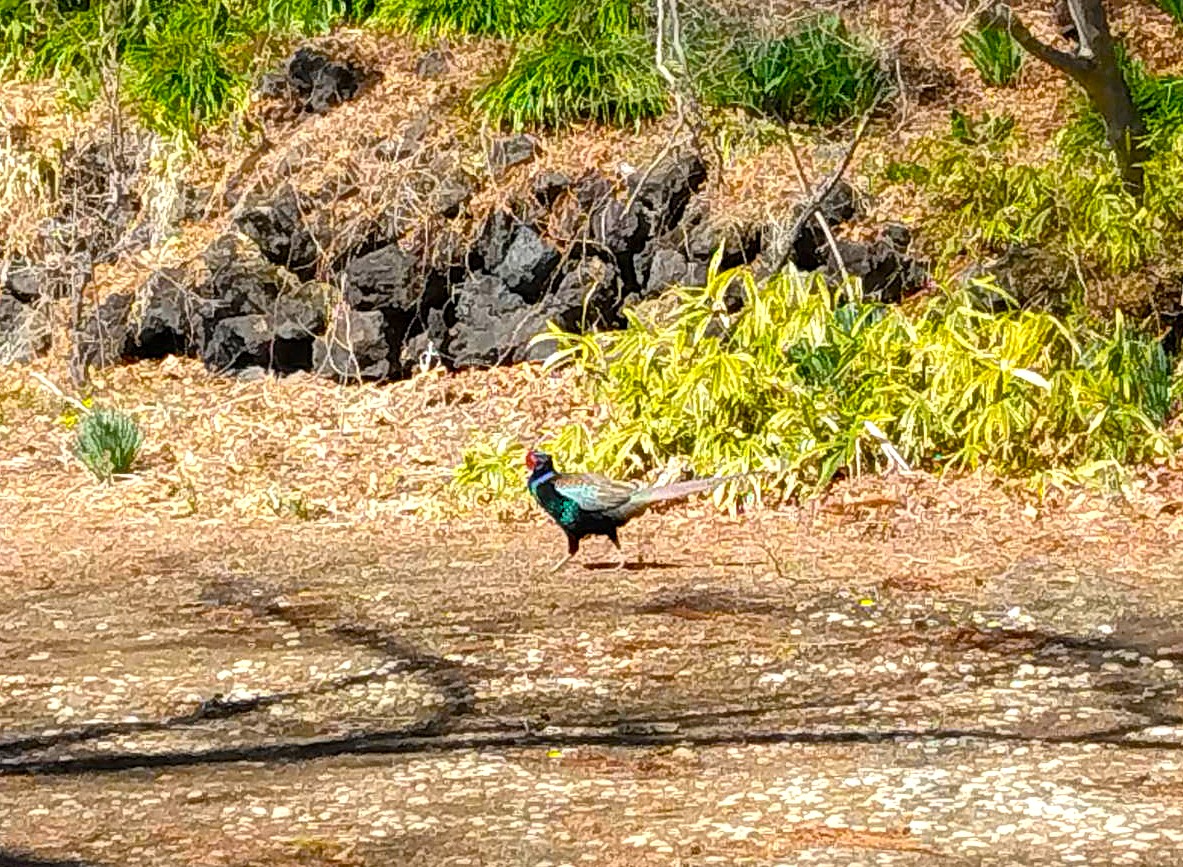 当施設の築山には本日、久しぶりに雉(キジ)のオスが遊びにやって来ました。