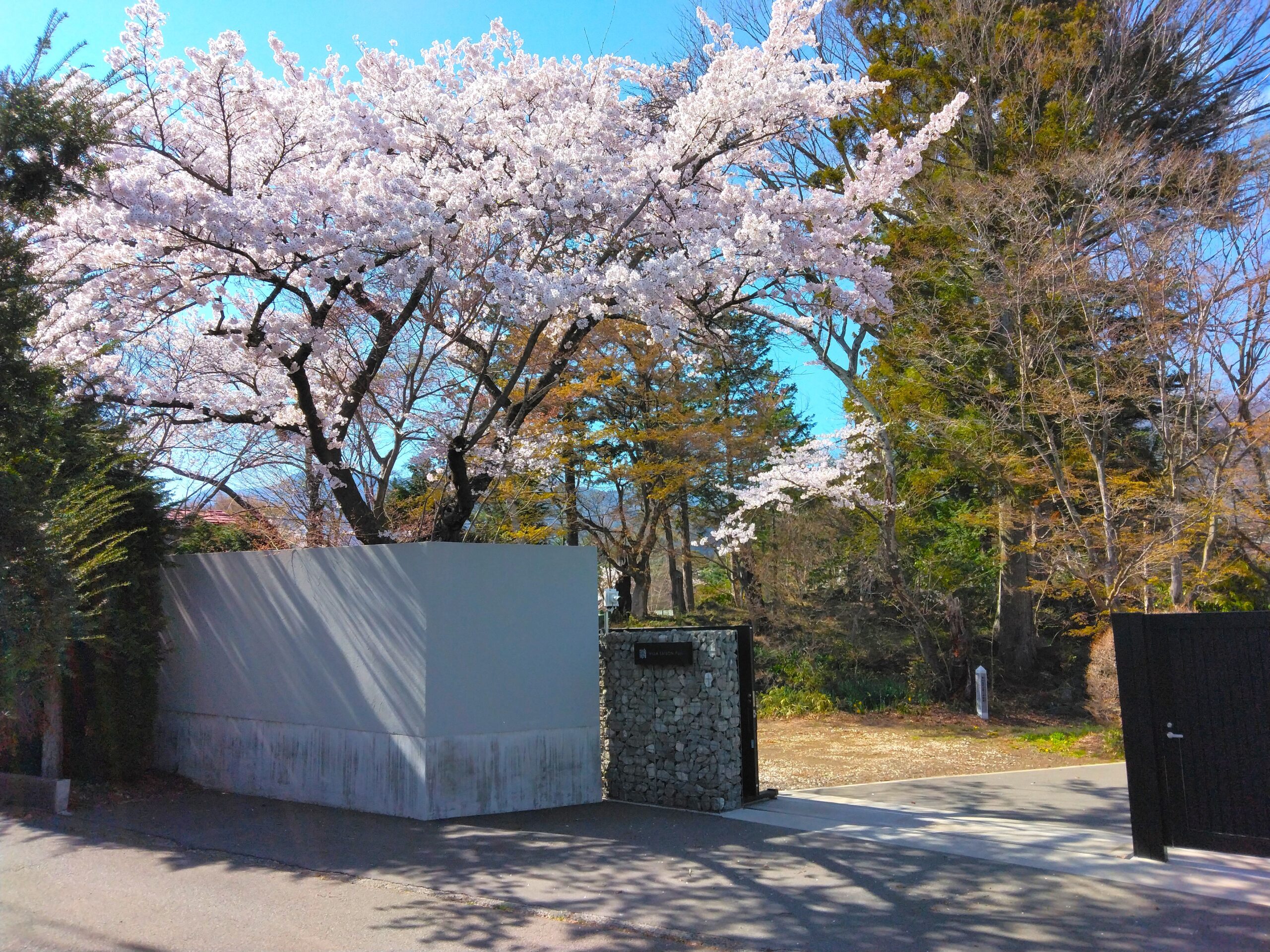当施設には正門ゲートの他、芝生エリアに顔を出している桜、築山には当施設全体を見守っているかのようにそびえる桜と何本かの大きな桜の木がございます。やや高齢な木たちなのですがまだまだ元気で今年もとっても元気に咲いてくれています。