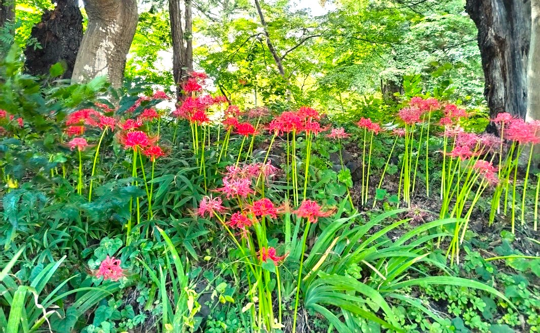 当施設の築山には今年も曼殊沙華(通称:彼岸花)が鮮やかに咲いて秋の訪れを感じさせてくれます。